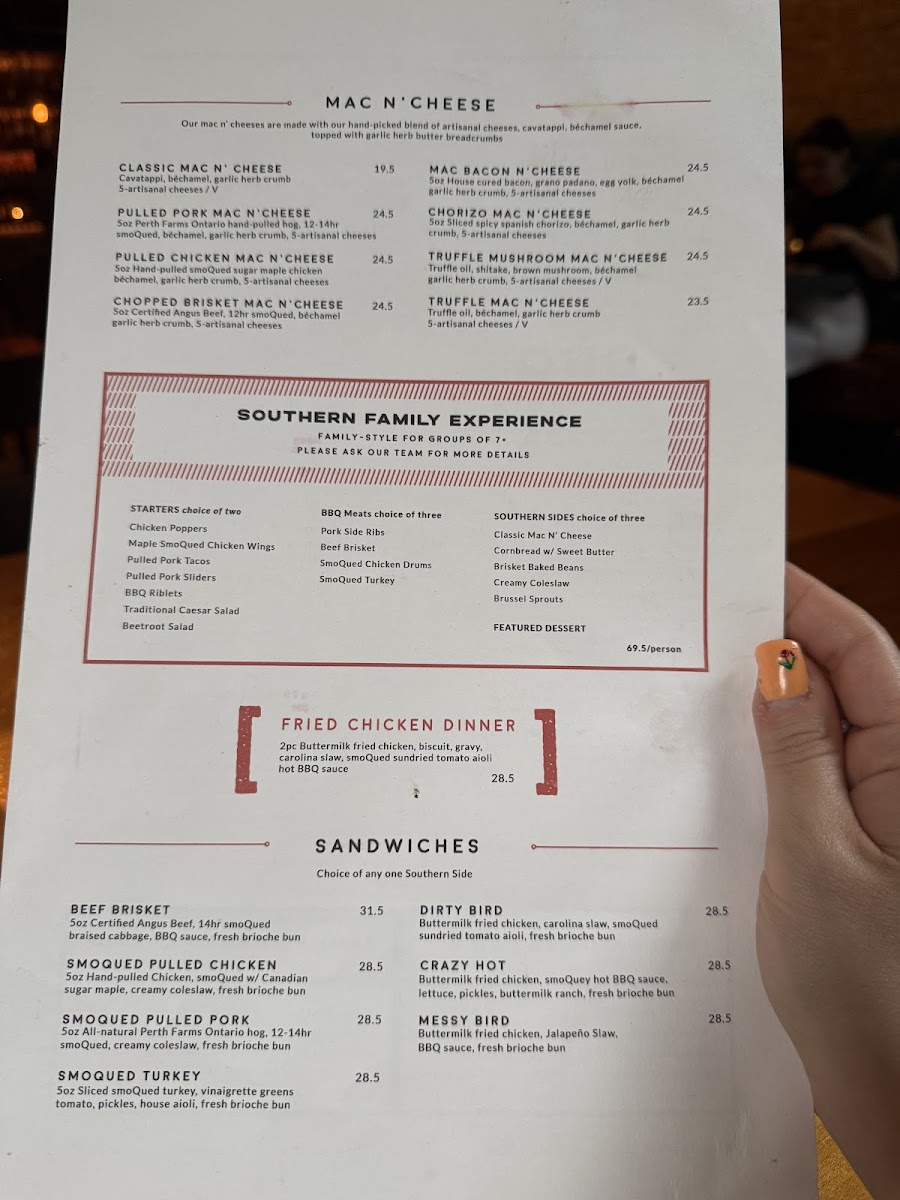 And then there are the sandwiches and platters, piled high and messy in the best possible way. Whether you’re stopping by for a laid-back dinner or sizing up your next comfort-food fix, every section of the menu feels hearty, generous, and made to satisfy a serious barbecue appetite.